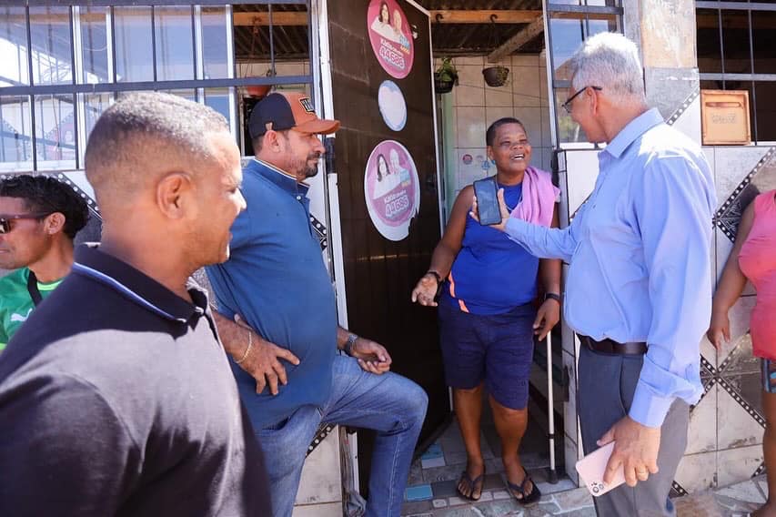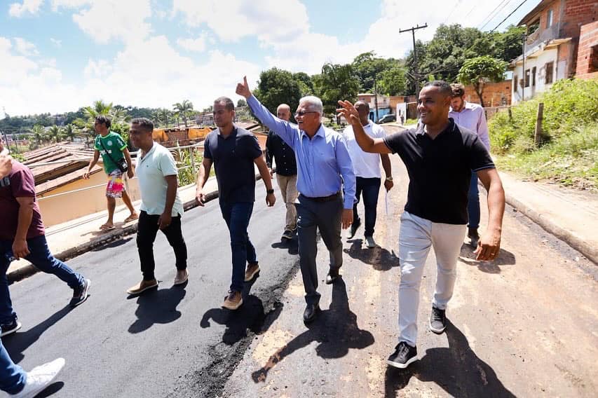 “A nossa Simões Filho segue em desenvolvimento e ao lado do secretário Gabriel Marques, dos vereadores Moisés Santos e Adailton Caçambeiro, lideranças locais e moradores, estive vistoriando as intervenções que estão sendo realizadas na Avenida Camaçari, no KM 30. No momento, as equipes realizam a pavimentação asfáltica e é assim, com responsabilidade social e compromisso com a nossa gente, que seguimos avançando e construindo uma Simões Filho cada vez melhor”, pontuou o prefeito Dinha.